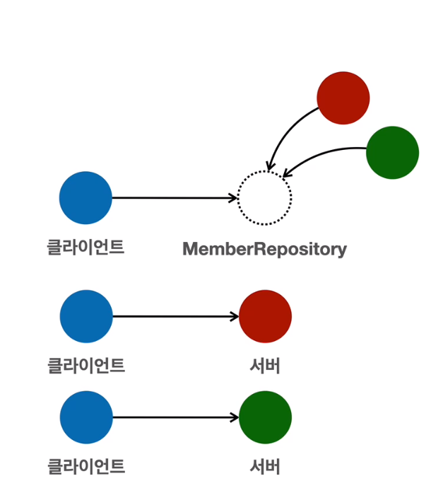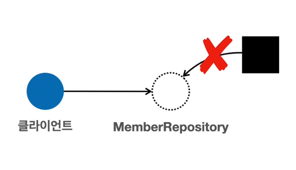 클라이언트는 MemberRepository를 의존한다. ( 쟤를 알고 있다.)
