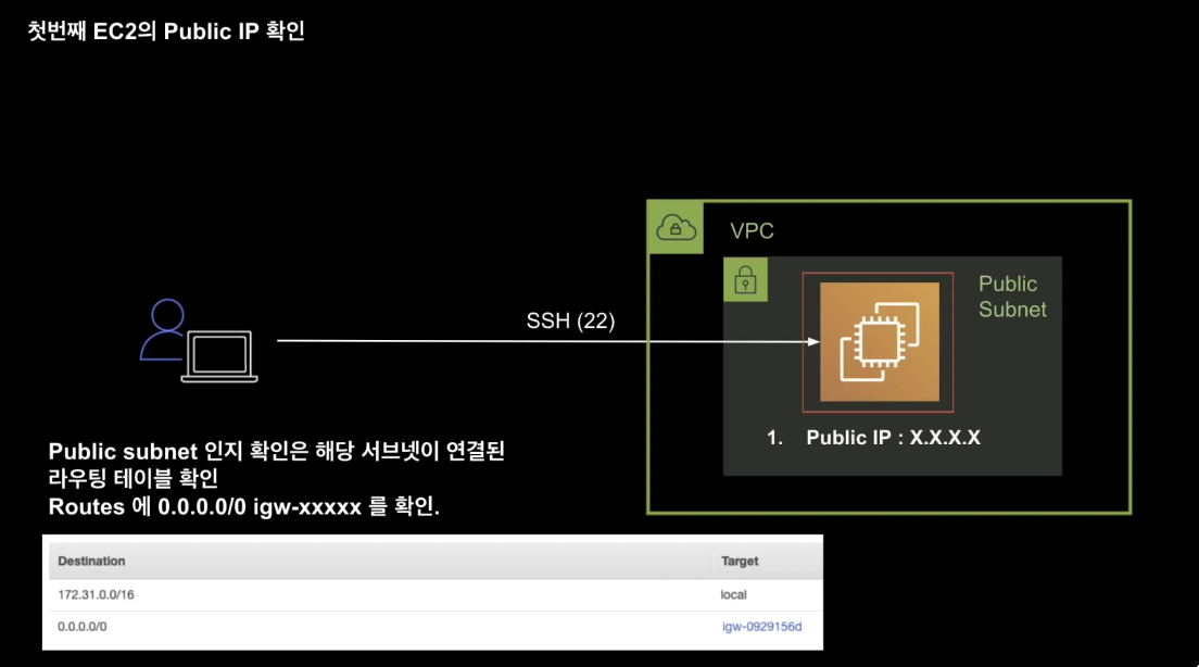 - Route에 0.0.0.0/0 igw-xxxxx 를 확인