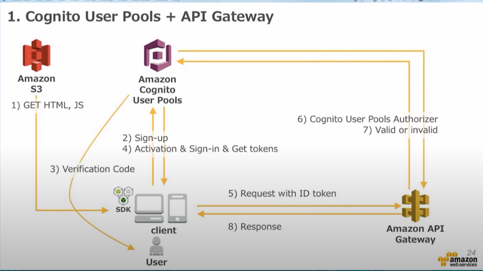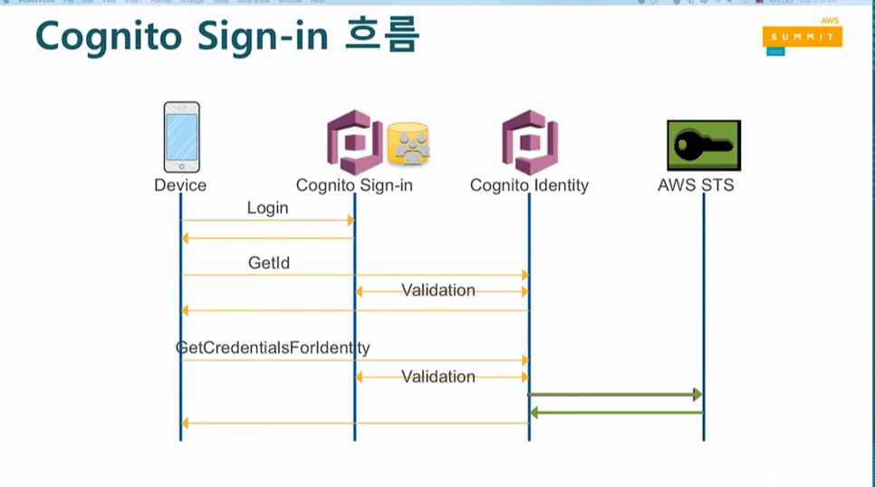 사인인을 해서 그사람에 대한 토큰 ID를 받아서 Cognito Identity에 물어봄 > Validation을 받음
